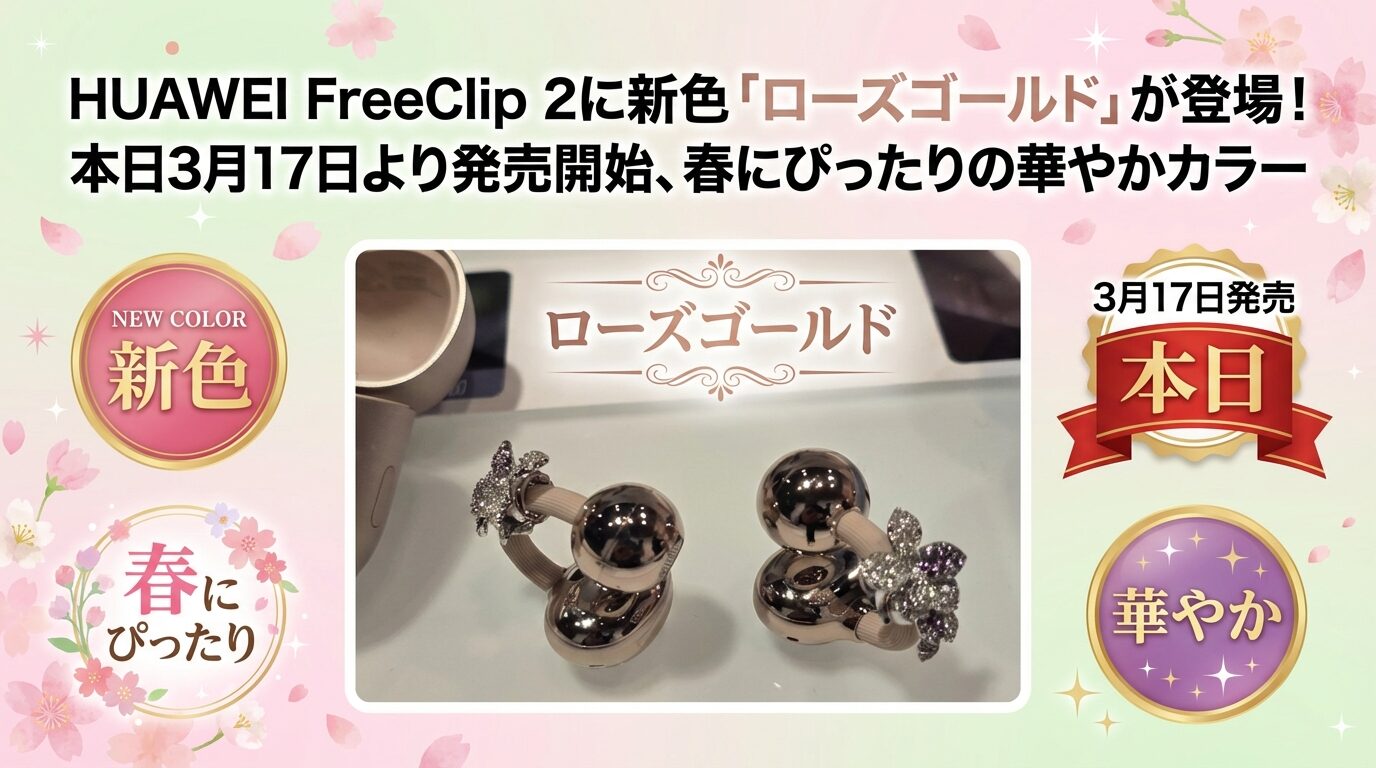 どうも、イヤーカフ型イヤホンは初代から愛用しているタケイ(@pcefancom)です。 ついにHUAWEIのイヤーカフ型イヤホン「HUAWEI FreeClip 2」の一般販売がスタートしました! クラウドファンディング「GREEN FUNDING」で支援総額1億2,600万円超えという驚異的な数字を記録した、まさにイヤーカフ型イヤホンの王様ともいえるモデルです。 購入先としてはAmazonとHUAWEI公式ストアの2つが注目で、それぞれ異なるメリットがあります。 Amazonは24,800円(税込)と市 ...