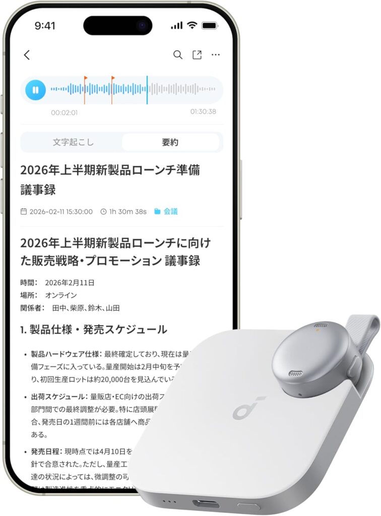 Anker Soundcore Workは、2026年3月3日に発売されたAnker初のウェアラブルAIボイスレコーダーです。