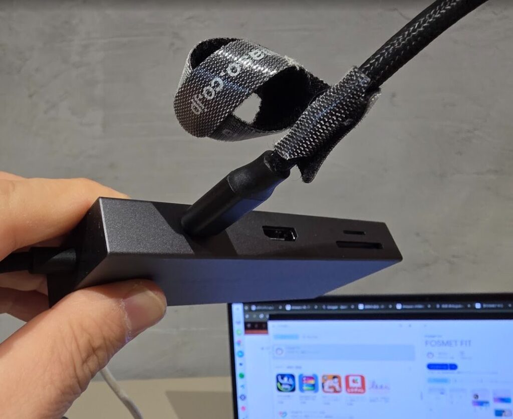 これまで複数のポートで行っていた「電源供給」「外部ディスプレイ接続」「周辺機器の接続」が、USBケーブル1本で全部完結できるようになったのは本当にありがたいです。片側のポートが故障していても、このハブがあれば全く問題なく使えています。