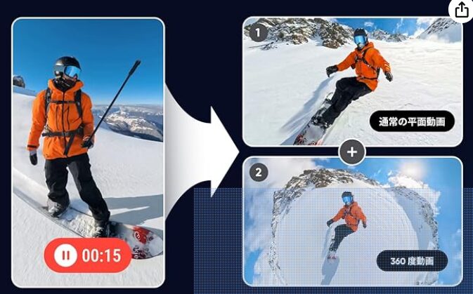 手に持ったり、カバンに挿して撮影するだけで、視線に近い世界を記録できるし、あとから360度から好きな画角で切り出せるのがすごい。