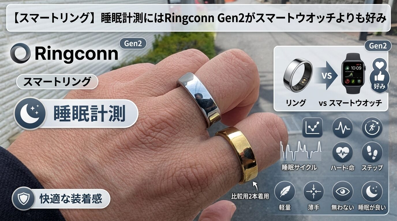 今回は、実際にスマートリング・スマートウォッチを複数台使い込んでいる私が、Ringconn Gen2(リングコン)が睡眠計測において優れている理由を正直にお伝えします。