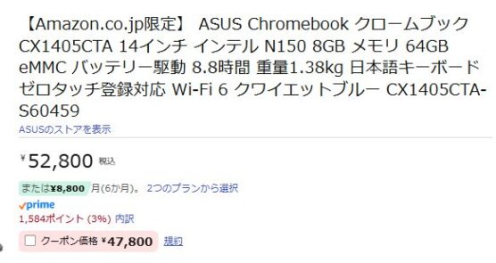 10月4日時点、クーポンで5万円以下!ネットサーフィン専用のサブパソコンとしてすごくオススメです!