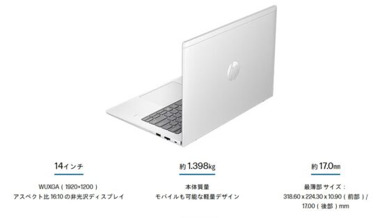 Probookのなかでも「薄型・コンパクトでスタイリッシュなデザイン」が特徴です。