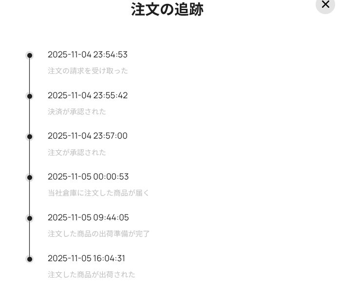 - 11月5日の14時に発送連絡(クロネコヤマト)