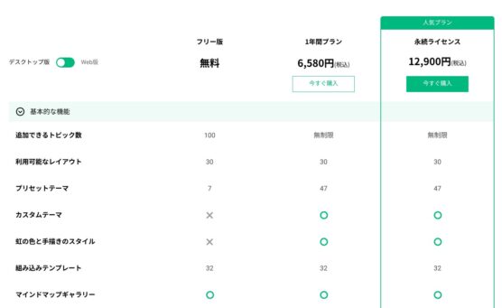 | マインドマップ数 | 無制限 | 無制限 | 無制限 |
