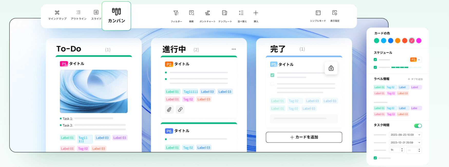 - マインドマップだけでなくタスク管理ツールとしても利用可能