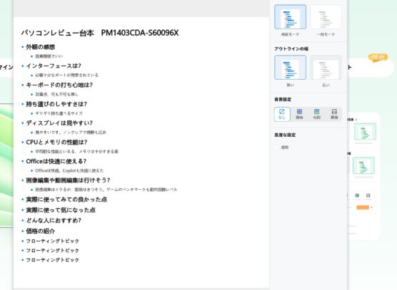 メモ代わりにまとめたものをツリー形式で見られるのは、記事の作成のときに使えます。