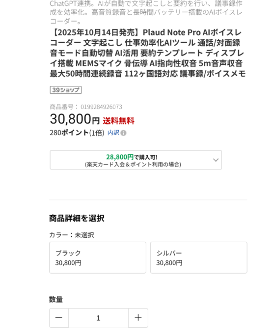 以前、Plaud Note Proが欠品中で入手できないという記事を書きましたが、なんと楽天の公式ショップで在庫有りになっていました!