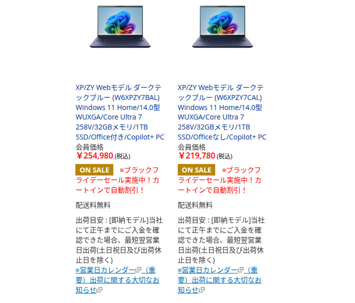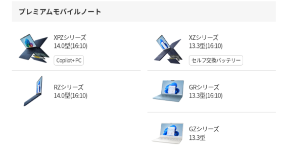 一押しは??バッテリー交換可能な「XPZ」がおすすめ!Core Ultra 7+メモリ32GBで21万円台と安い