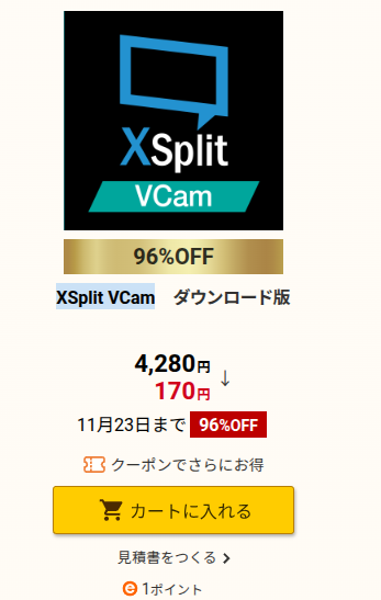 - 対象製品: XSplit VCam (ダウンロード版)