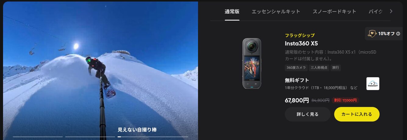 (1)17,000円オフ! フラッグシップモデル「Insta360 X5」