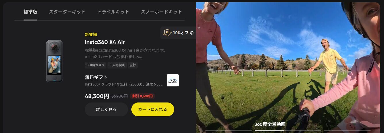(3)8,600円オフ! 新登場モデル「Insta360 X4 Air」
