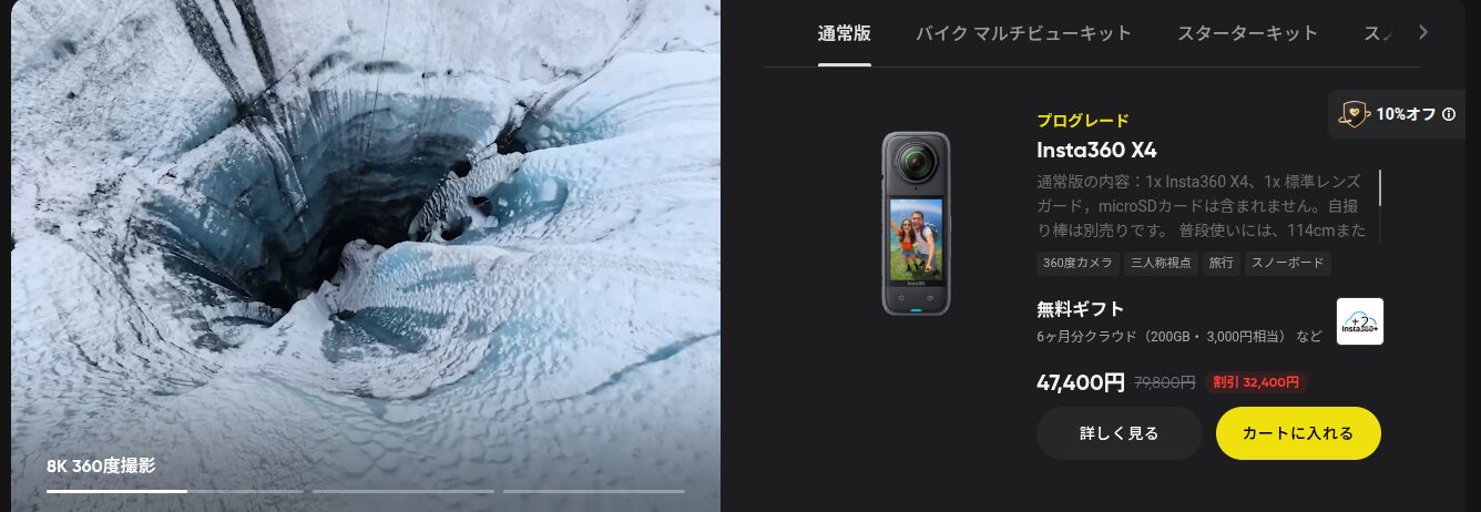 (2)32,400円オフ! プログレードモデル「Insta360 X4」