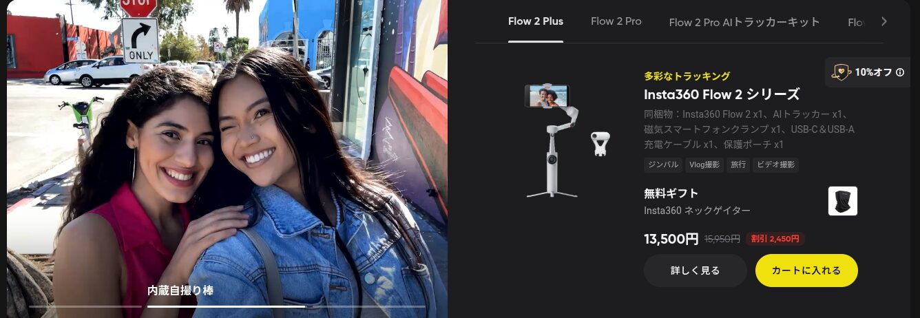 スマートフォン用ジンバル「Insta360 Flow 2 シリーズ」もセール対象です。