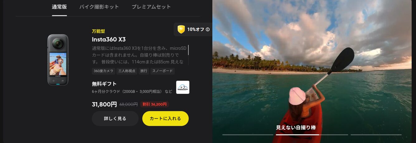 (3)36,200円の大幅割引! 万能型モデル「Insta360 X3」