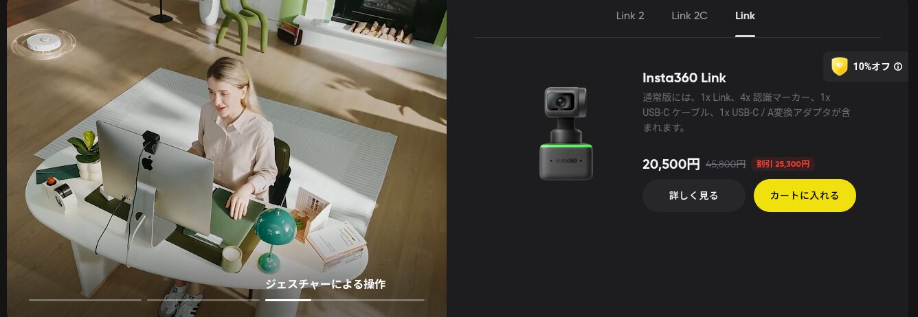 (8)25,300円の大幅割引! Webカメラ「Insta360 Link」