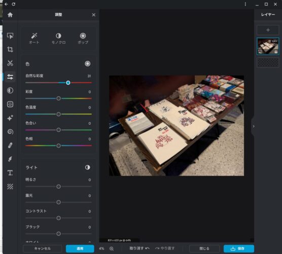 編集メニューもフォトショップライクですし、レイヤーだってしっかり使えます。