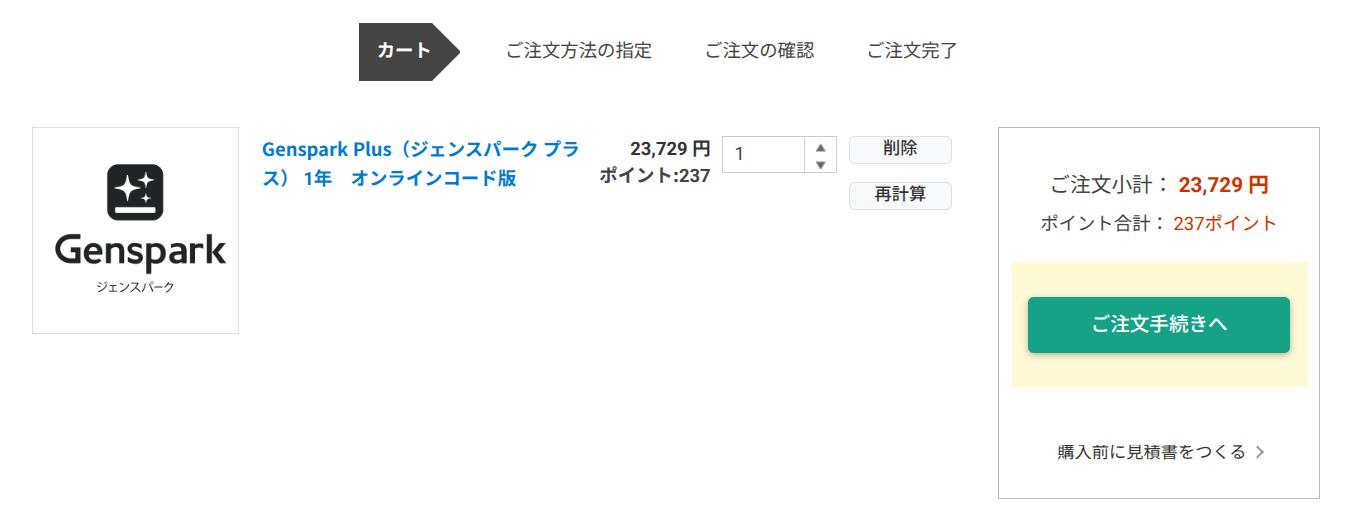 (2)ソースネクストでGenSpark Plusを購入する