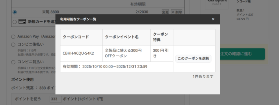 ブラックフライデー期間中は、300円オフクーポンがGenSparkにも適用できました。