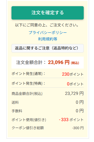 この際、クーポンがある場合には忘れずにクーポンを適用しておきましょう。