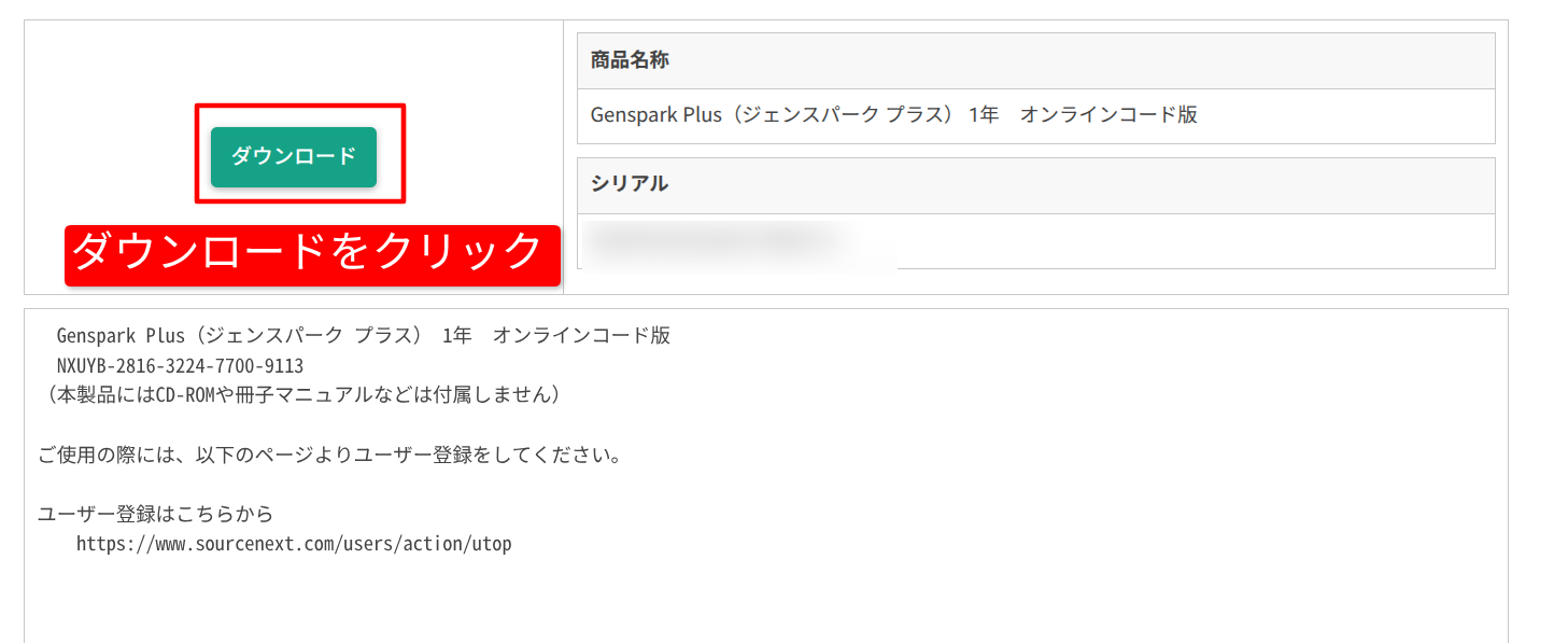 ソースネクスト版 GenSpark Plus(1年版)を購入、ライセンスをアクティベーション(有効化)する方法でした!