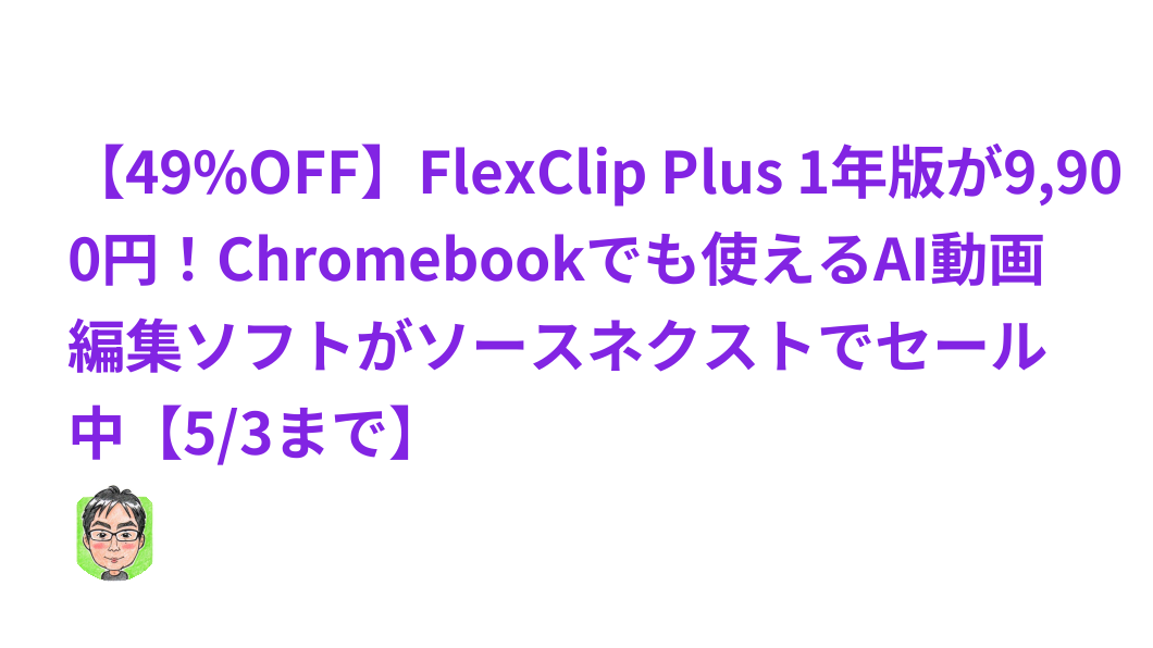 【49%OFF】FlexClip Plus 1年版が9,900円!Chromebookでも使えるAI動画編集ソフトがソースネクストでセール中【5/3まで】