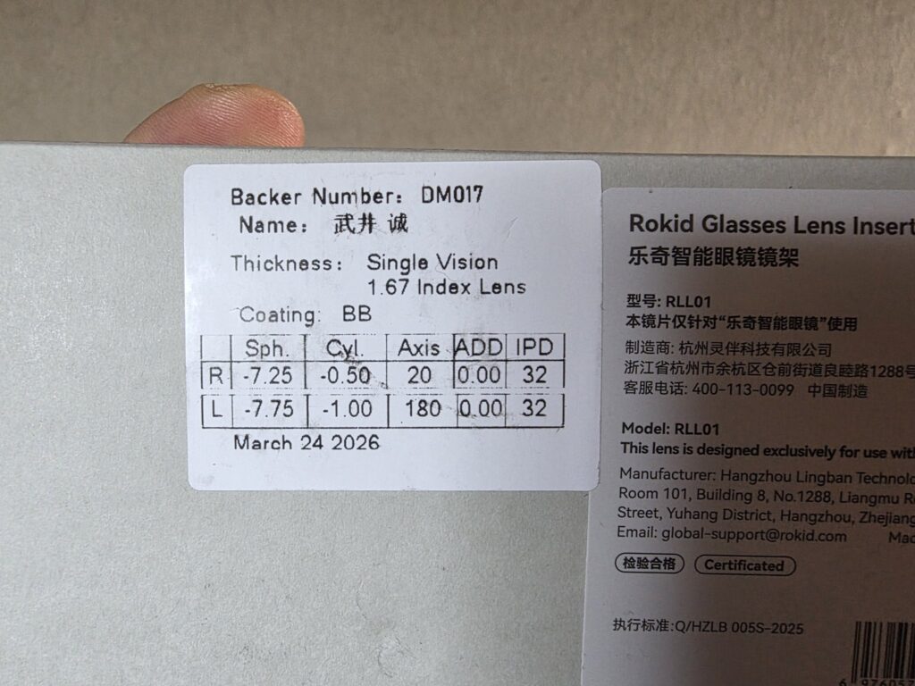 でもRokidのスマートグラスは度付きレンズに対応しています。