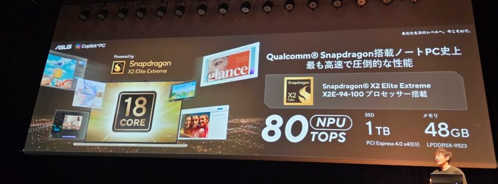 最新のSnapdragon X2 Eliteプロセッサー搭載で、NPU性能は最大80TOPS。