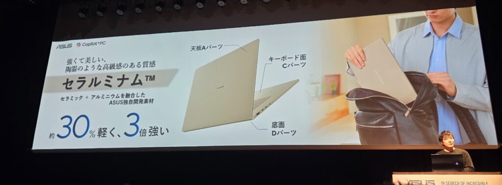 ASUS独自素材「セラルミナム」で高級感と堅牢性を両立