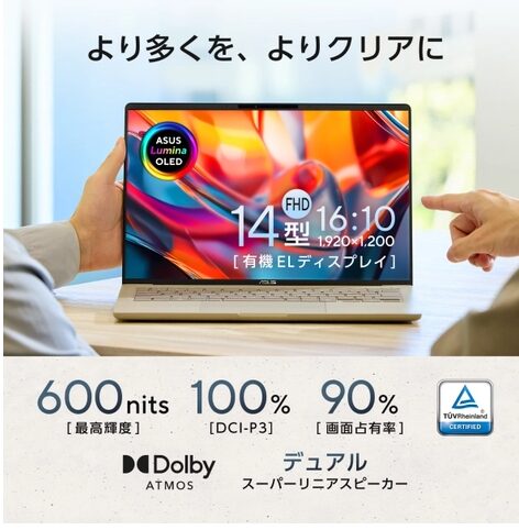 | ディスプレイ | 14.0型 OLED WUXGA(1,920×1,200)60Hz グレア |