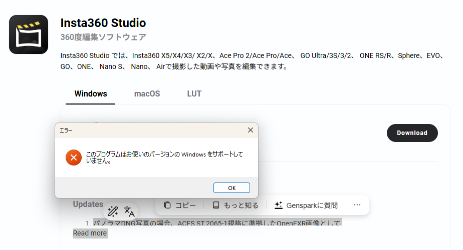 Insta360 Studioがインストール時にエラーになりました。