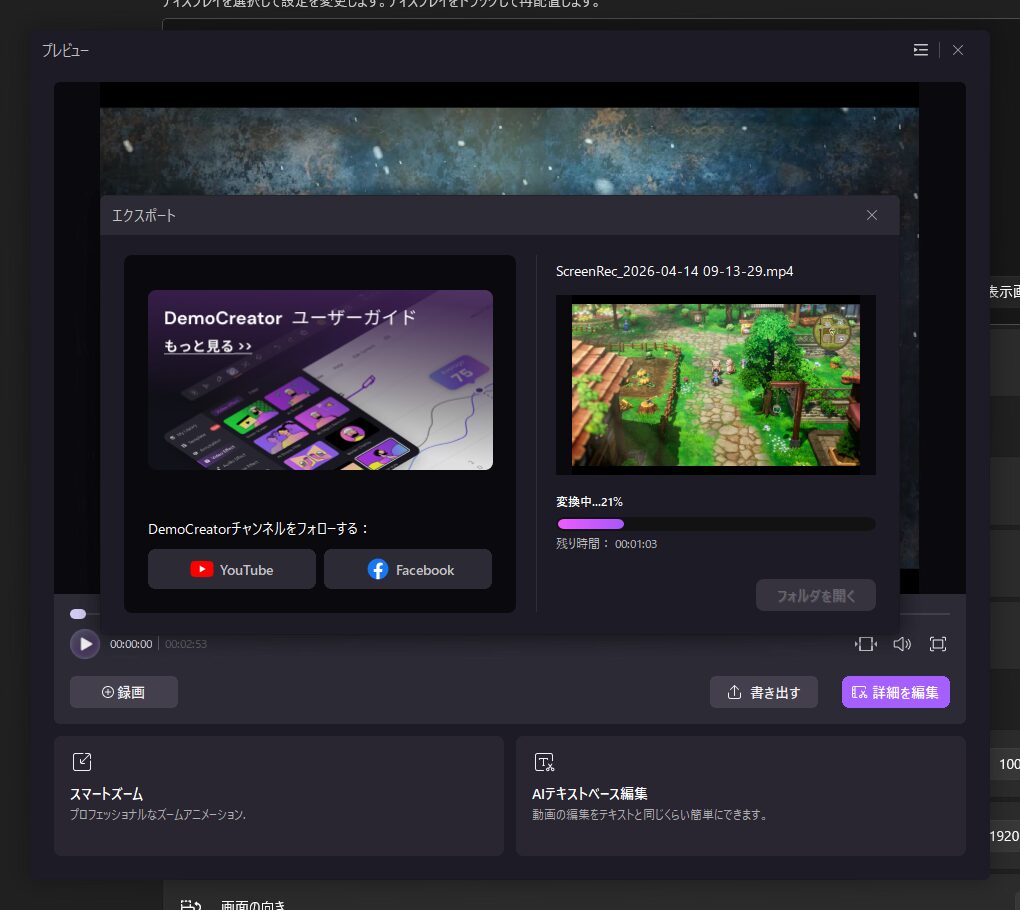 動作が重めの画面収録ソフトも会敵に動作しました。10分のフルHD動画も3分くらいでエクスポートしてくれました。