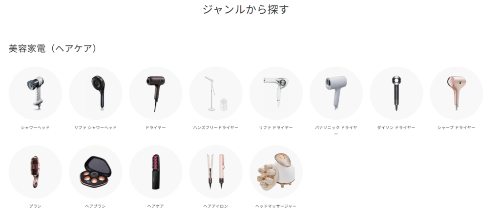DJIのカメラやInsta360の360度カメラ、ホームジム機器、美容家電など、「ちょっと高いけど試してみたい」と思うような製品が充実しているのが特徴ですね。