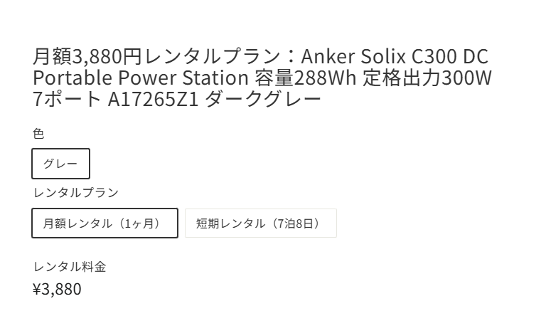 商品ページで「7泊8日」か「月額レンタル」かを選びます。
