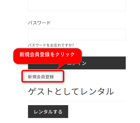 ちなみに新規会員登録は、購入画面で「ログインしてください」をクリック。