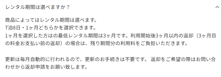 気になった点|月額レンタルは最低3ヶ月の利用が必須、一ヶ月だけ借りるのが不可