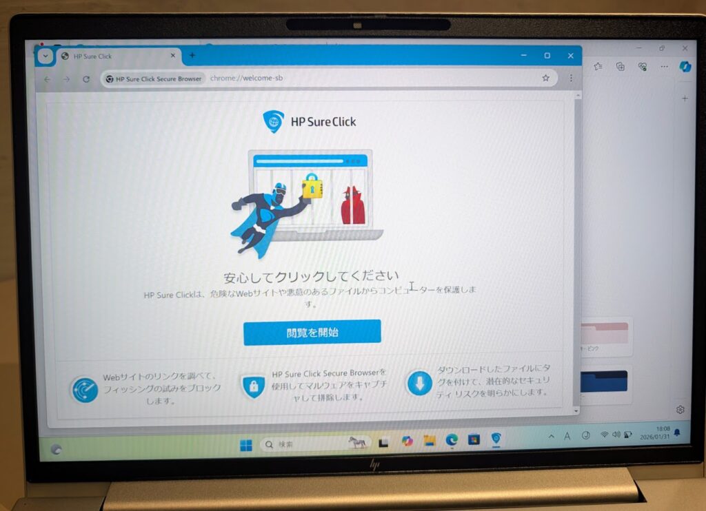 良かった点(5)HPのセキュアブラウザ、マルウェア対策ソフトが標準でついてくる