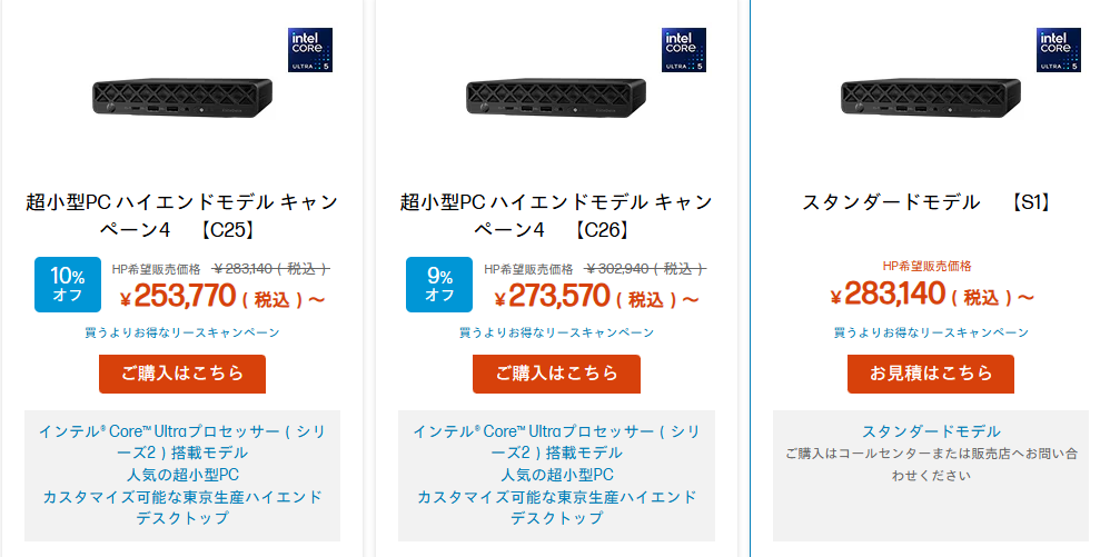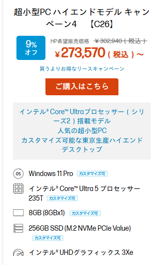 HPの法人向けモデルは、タイミングによってはキャンペーン価格個別見積もりで印象が変わることがあります。