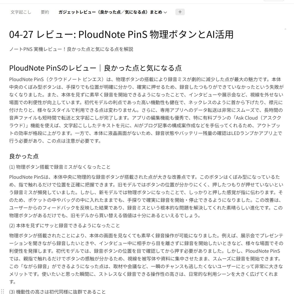 ちなみにこの記事もPlaud NotePin Sで録音したものを整形したモノです。