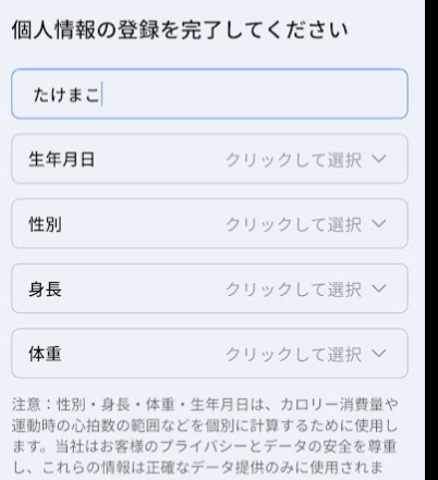 充電が完了したら、リングを使うためのアプリのインストールと会員登録です。
