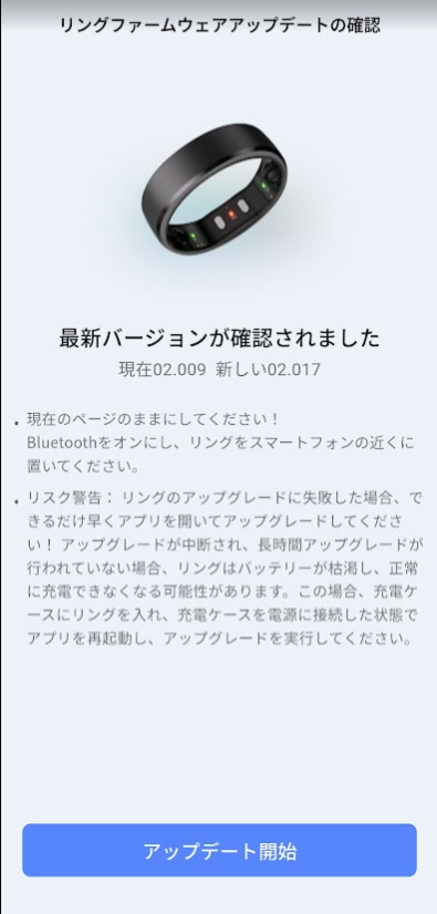 スマホと接続したら、この手のガジェットではおなじみ?のファームアウェアアップデートです。