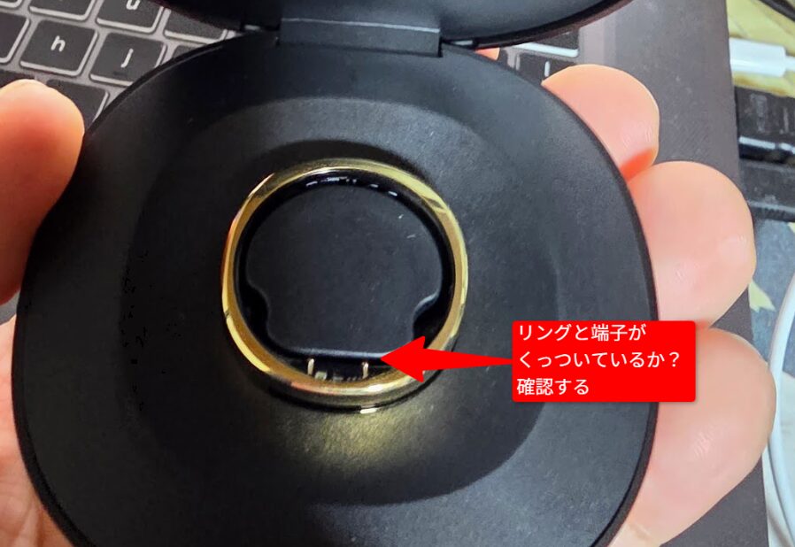まず最初に確認してほしいのが、リングがケースの充電端子にしっかり接触しているかです。