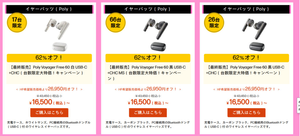 ビジネス向けオーディオブランド「Poly」の完全ワイヤレスイヤホンが、HPアウトレットで衝撃の62%OFFになっています!