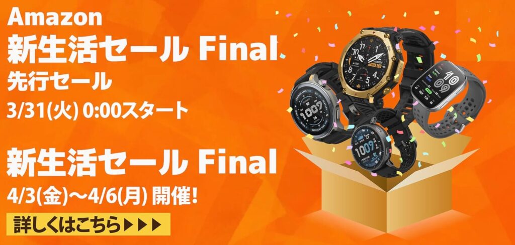 Amazfitの新生活セールは、3月31日から4月6日まで の期間限定開催です。