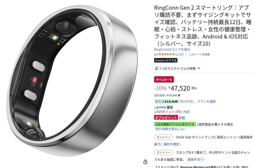 【10%OFF】RingConn Gen2がAmazonタイムセールで47,520円!過去最安値レベルでお買い得