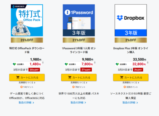 ソースネクストでおすすめしたいのは、1Passwordの3年版とDropboxの3年版です。