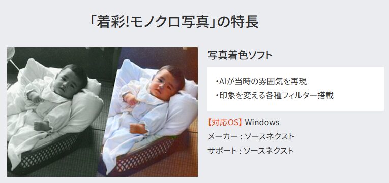 ご家族の古い写真をカラーで蘇らせたい方には面白いソフトですね。Windows対応です。