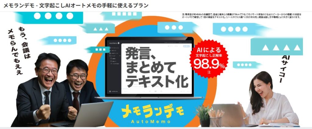 ソースネクストの文字起こしAI「AutoMemo(オートメモ)」を手軽に使えるプランです。
